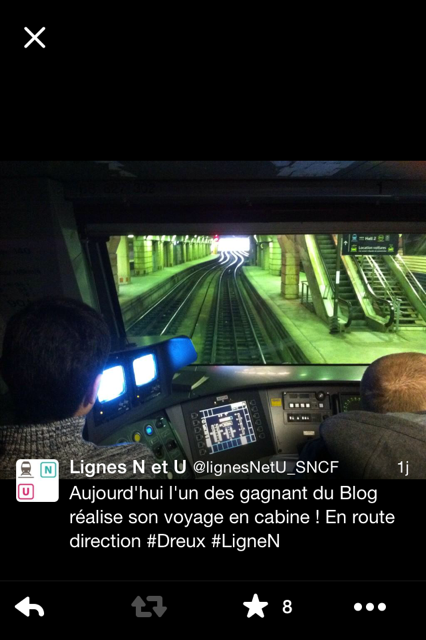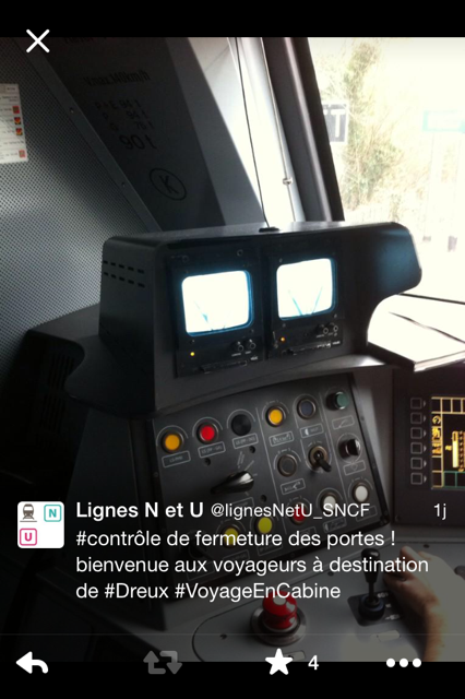 Hier, l’un de nos gagnants du Blog a réalisé un voyage en cabine sur la ligne N. Il a eu la chance d’entrer dans les coulisses de la conduite et de découvrir le monde mystérieux de la circulation lors d’un aller retour en gare de Dreux! Certains d’entre vous ont vécu ce moment en direct grâce à Twitter! Pour ceux qui n’ont pas encore ouvert leur fil twitter (je vous invite vivement à nous rejoindre!!) je vous propose de revivre ce moment et de partager avec lui les différentes étapes de cet étonnant voyage! …Voyage que vous pouvez aussi (re)vivre grâce aux vidéos (en lien en fin de billet!)