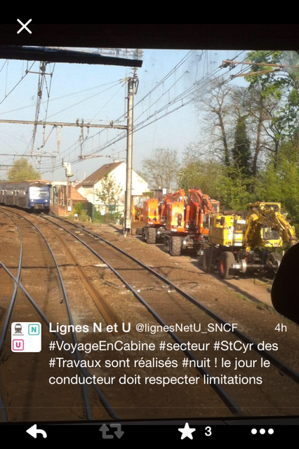 Matinée épatante ! Que de souvenirs mémorisés ! Après une nuit agitée par la fébrilité et l’attente, après les photos d’usage (merci Amélie), je monte enfin dans la cabine de la BB 27319 pour un voyage Paris – Dreux et retour. Voyage très intéressant, passionnant, et riche en questions – réponses (j’en ai encore à poser, il faudra donc que j’y retourne …) tant à l’aller qu’au retour, cette fois-ci dans la cabine de la voiture pilote, un peu moins spacieuse et confortable que celle de la BB. J’ai ainsi pu côtoyer le quotidien des conducteurs mécaniciens et appréhender les problèmes qui peuvent contrarier l’exactitude des marches. Le souci permanent du conducteur, c’est faire l’heure, respecter l’horaire, arriver à l’heure au butoir, sachant que tout retard se répercute en s’amplifiant sur les marches qui suivent. Il faut donc dans la mesure du possible combler les éventuels retards par une marche plus agressive tout en respectant bien sûr les consignes de sécurité et les limitations de vitesse. Je suis donc rentré chez moi la tête pleine de souvenirs. Et je tiens à lancer un grand merci à l’égard du conducteur et de l’agent accompagnateur dont la gentillesse et la disponibilité sont à saluer. Et merci à Amélie qui a organisé ce voyage.