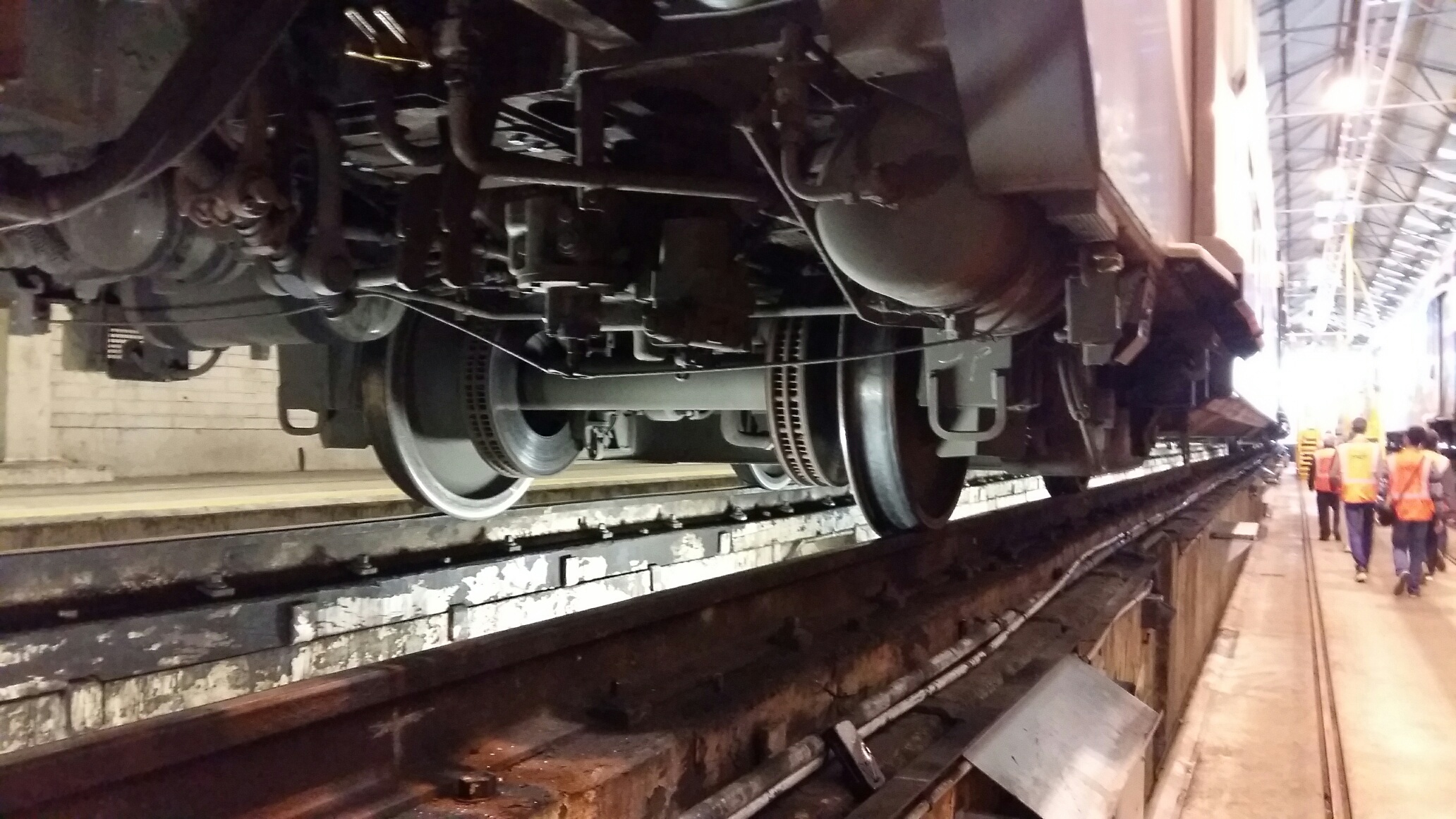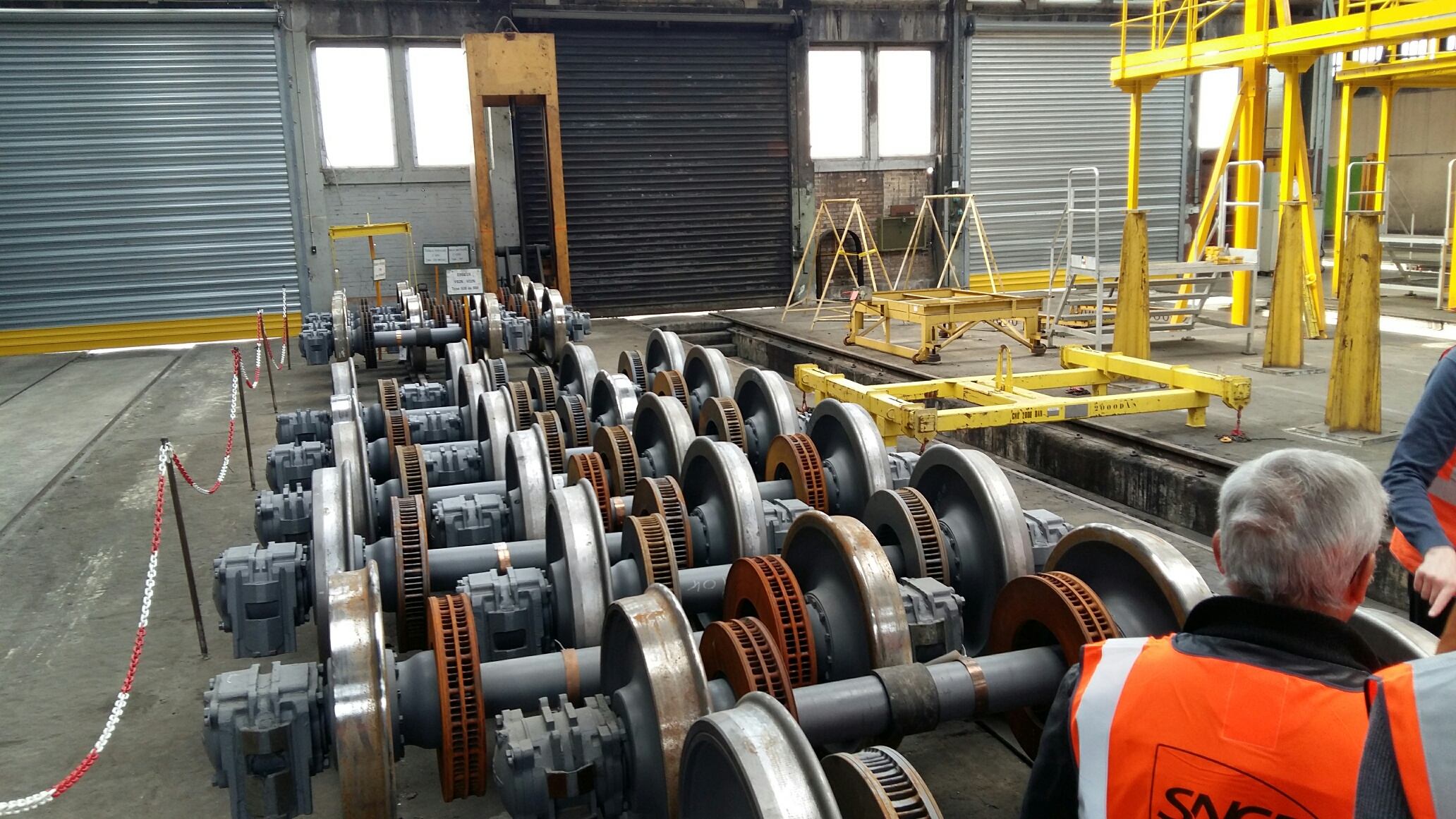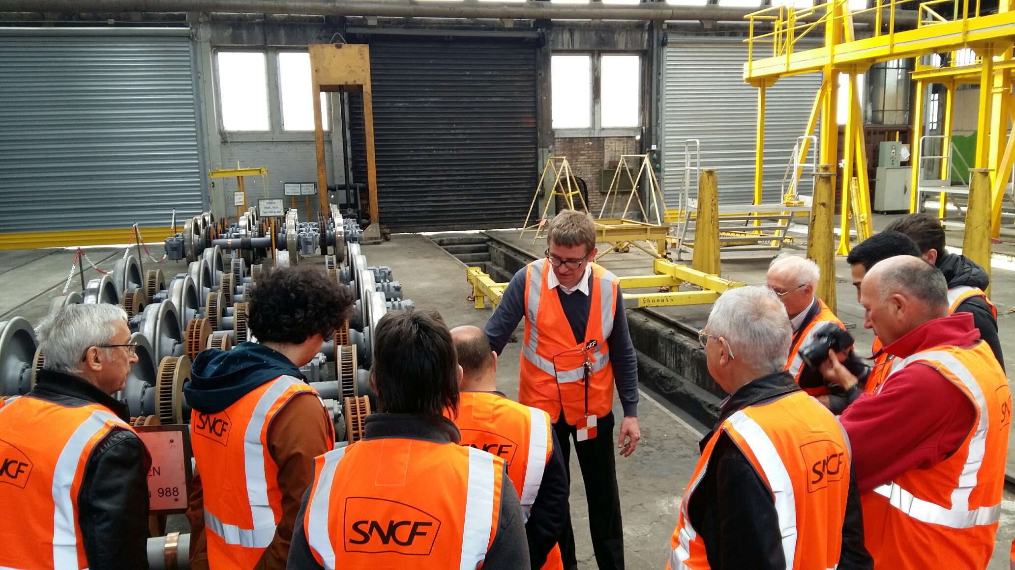 Après avoir arpenté tous les recoins du centre de maintenance et découvert l’atelier de levage, la rotonde et son plateau mobile, le bâtiment de maintenance à bord (…), nos visiteurs VIP ont pu observer en détail des blocs moteurs, des bogies, des essieux et des pantographes…