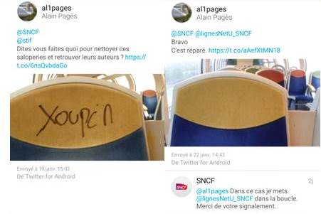 après avoir laissé faire pendant des années (fraude, incivilités…) pour la paix sociale, on est arrivé à un niveau tel qu’il est aujourd’hui difficile de revenir à des conditions de voyage normales. Avec les économies que fait la SNCF sur les moyens humains (plus personne dans les trains, très peu sur les quais …), elle renverse la situation en demandant aujourd’hui aux usagers d’assurer ces missions autrefois dévolues à la SNCF, sachant très bien que les alertes via le 37177 ne donneront rien puisqu’il faut que les fautifs soient pris sur le fait. Un moyen fallacieux de rassurer les usagers en leur faisant croire qu’ils seront entendus.