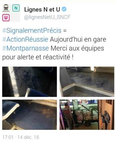 - Contre les salissures et dégradations dans les trains : Opération nettoyage en gare terminus, cellule spécialisée en « détagage » au centre de maintenance et expérimentation à venir de signalement voyageur