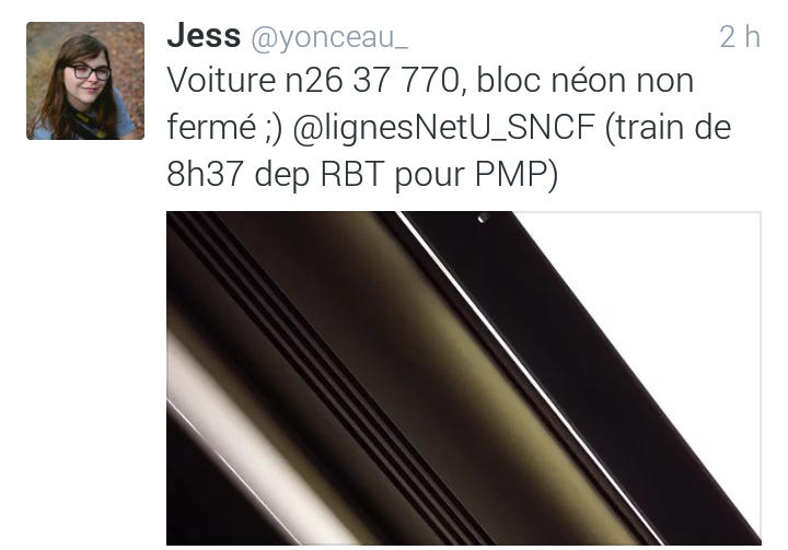 Aujourd’hui, train de 19h28 au départ de PMP à destination de Dreux, 3 jeunes femmes s’étaient étalées sur 8 places pour se faire un festin de fast-food en mettant partout parterre… En plus avec les perturbations il y avait plus de monde et en heure de pointe 🙁