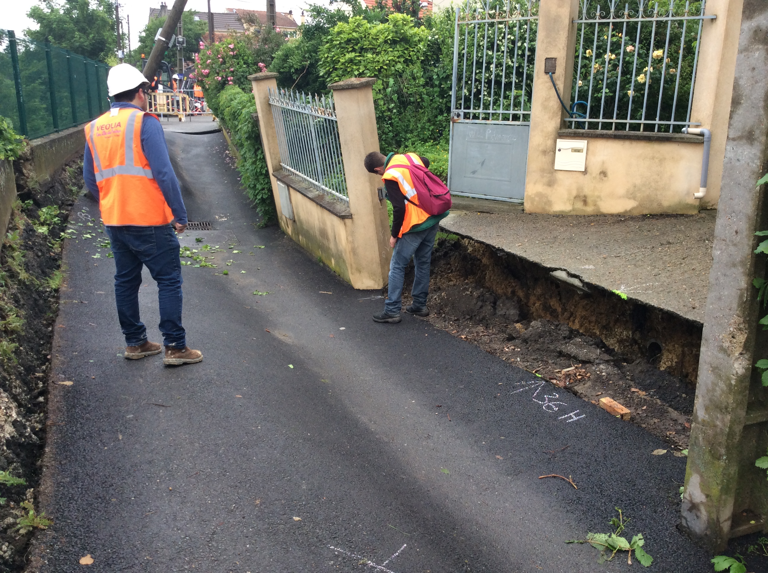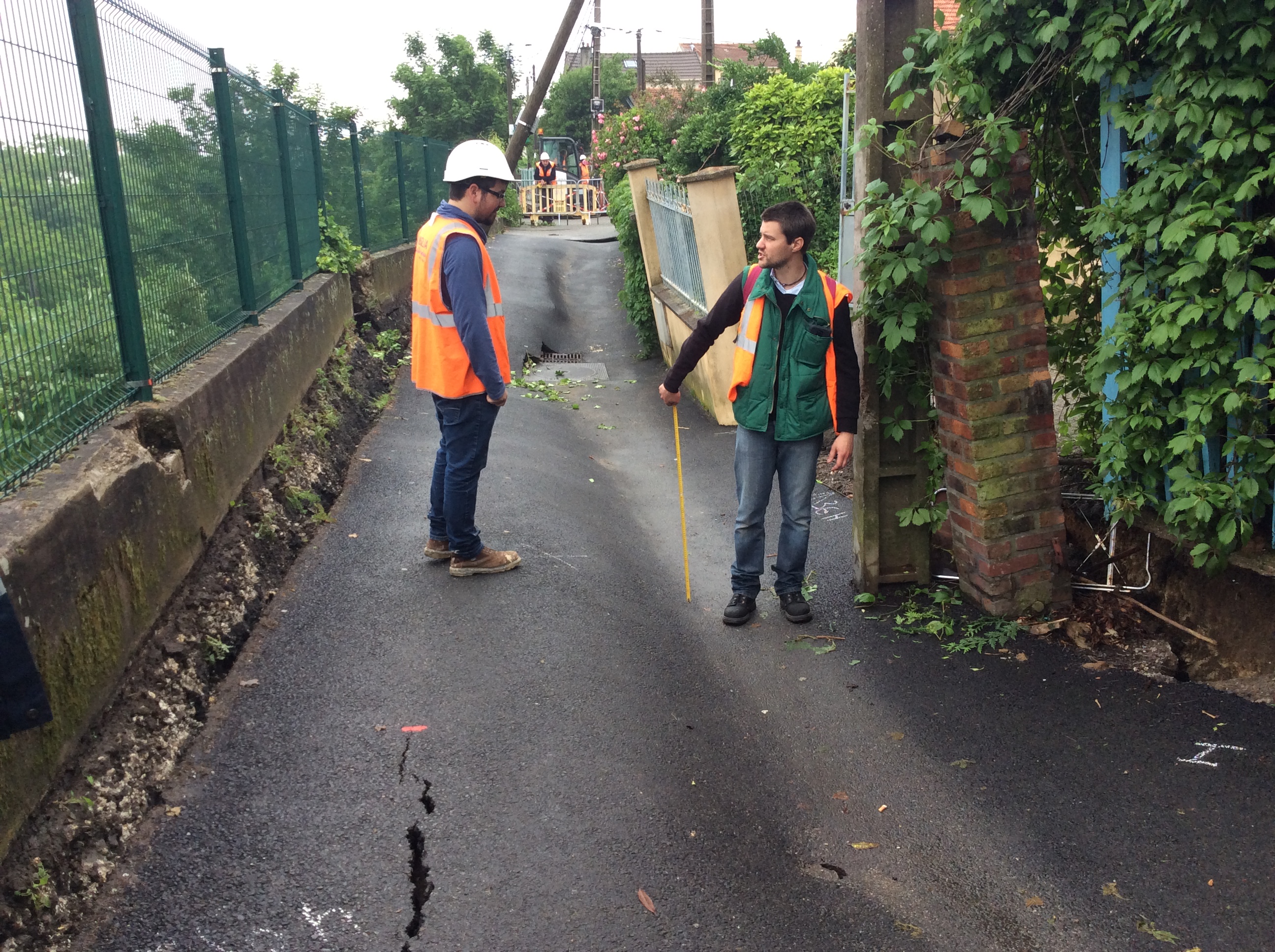 L’affaissement est conséquent, à 20h50 le sous-préfet des Hauts de Seine est sur le site et les maisons concernées par l’affaissement sont évacuées. On estime à cet instant entre 800 à 1000 m3 de terre à évacuer d’urgence.