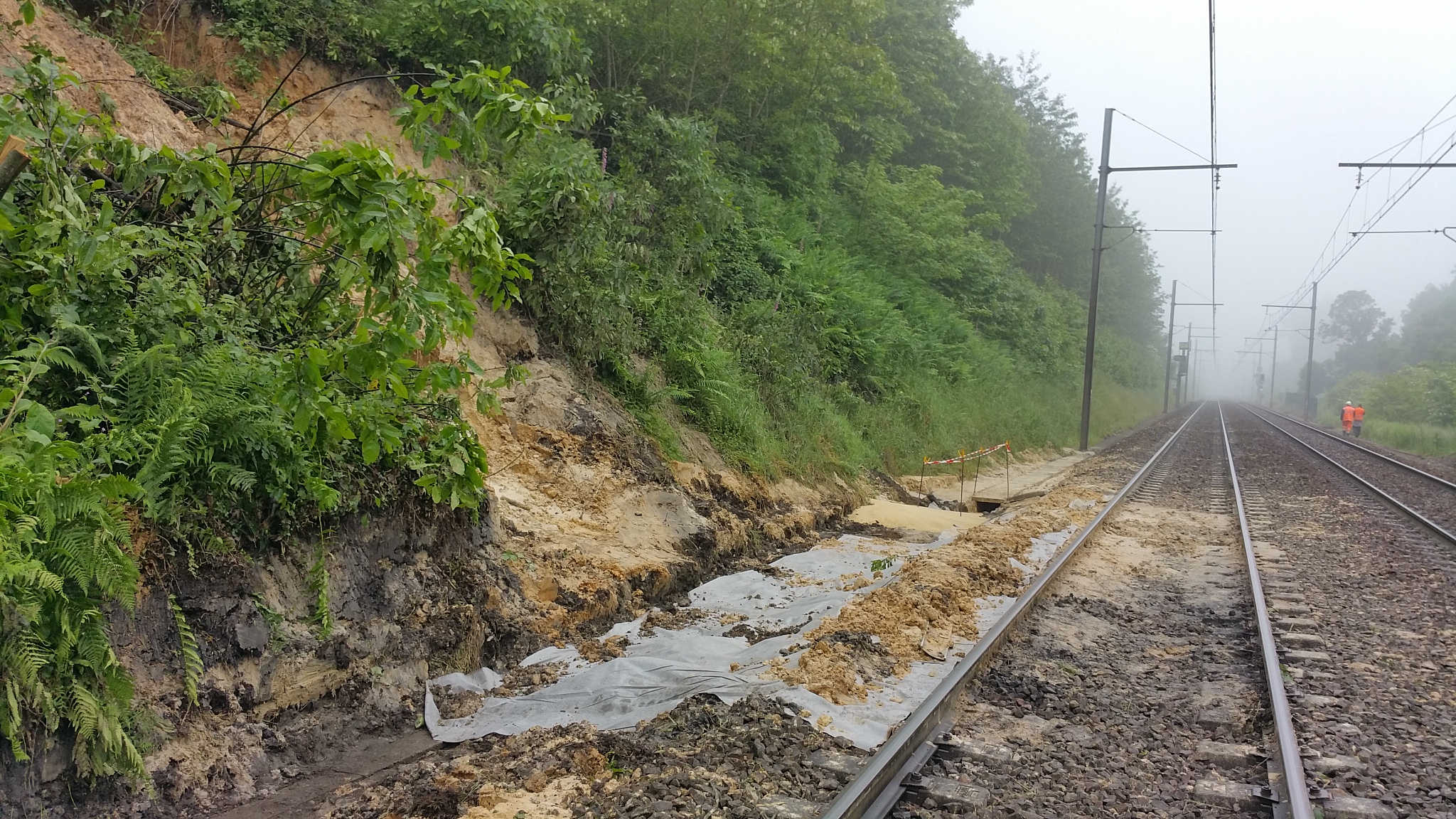 Les voies sont à présent nettoyées et dégagées mais l’instabilité des talus impose toujours de fortes restrictions de circulation.