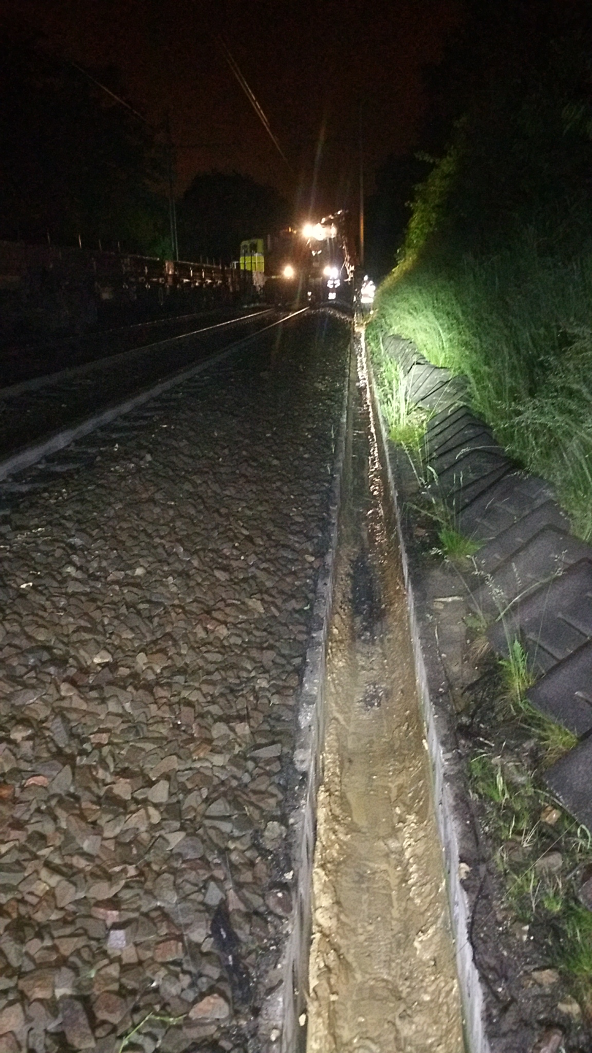 Les précipitations se calment peu à peu : un état des lieux approfondis peut commencer. Les travaux sont colossaux. Il faut dégager les voies de tous les débris et arbres emportés par les coulées, déblayer les voies recouvertes et sécuriser les talus qui menacent de tomber. A cet instant, les travaux sont estimés à 6 jours d’interventions mais les pluies qui se poursuivent par intermittence augmentent les risques de nouveaux glissements. La mobilisation de toutes les équipes sur le terrain est totale. On réquisitionne des engins prévus sur un autre chantier et les équipes vont travailler toute la nuit pour dégager la voie en retirant la boue présente.