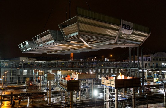 Baptisée « Roi Soleil », l’opération de grutage et de dépose de la plateforme de la passerelle 2 a été réalisé dans la nuit du 13 au 14 février 2015. Néanmoins, la circulation fut interrompue pendant 2 jours pour permettre la réalisation des tests de sécurité et valider la réussite de l’opération. Grâce à ces 4 escaliers fixes, 4 escaliers mécaniques ainsi que 4 ascenseurs desservant les différents quais, la passerelle 2 a amélioré l’accessibilité et la circulation en gare tout en offrant plus de confort aux voyageurs.