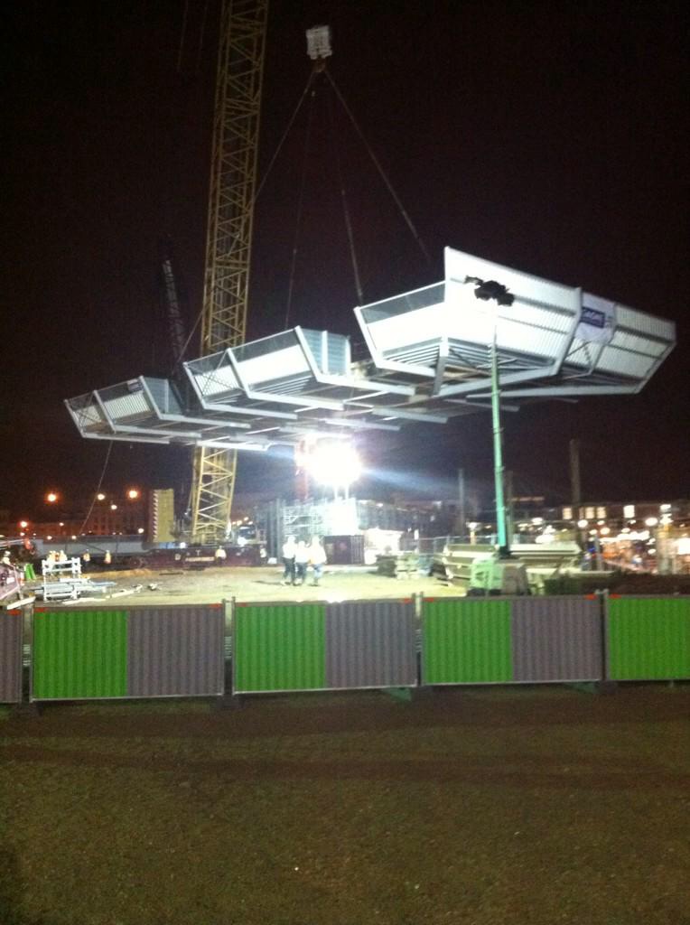 Le grutage d’une passerelle de 100 mètres de long et de 10m de large n’est pas chose aisée… Il a fallu pas moins de 37 poids lourds pour transporter l’ensemble de la structure sur le chantier de la gare de Versailles…