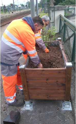 Depuis 2008, SNCF s’engage dans des actions visant les personnes éloignées du marché du travail pour leur donner une nouvelle opportunité de réinsertion dans la vie professionnelle. Aux abords des lignes N et U, des chantiers d’insertion ont vu le jour pour prendre en charge notamment l’entretien et l’aménagement des espaces verts. Ces travaux sont initiés pour redonner à la végétation environnante une place importante dans l’embellissement des gares. En se réinsérant, ces salariés offrent aussi à la Nature l’occasion de retrouver la place prépondérante qui est la sienne dans le paysage des gares.