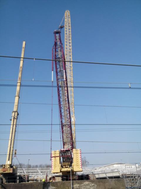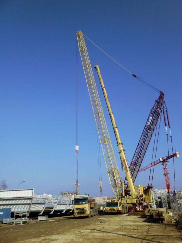 L’opération a été réussite puisque la plateforme de la passerelle 2 a été assemblée en un week-end grâce à l’apport déterminant de cette « méga-grue » !