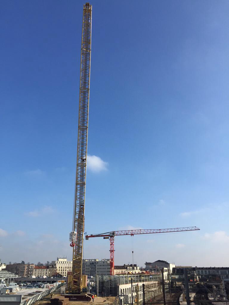 Ce colosse fait de métal et d’une hauteur de 96 mètres n’a qu’un seul inconvénient. La grue doit être livrée en pièces détachées et montée sur le chantier !