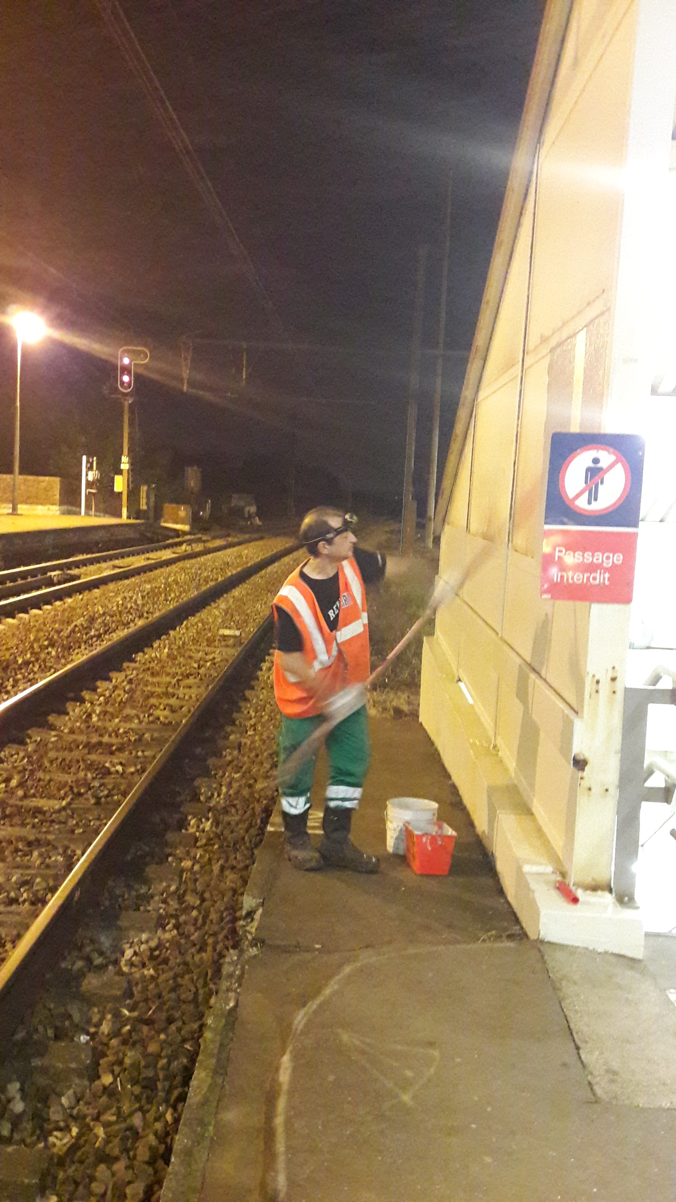 Pour finir ce grand nettoyage d’été, une peinture anti-graffiti a été appliquée sur le bâtiment entre les voies.