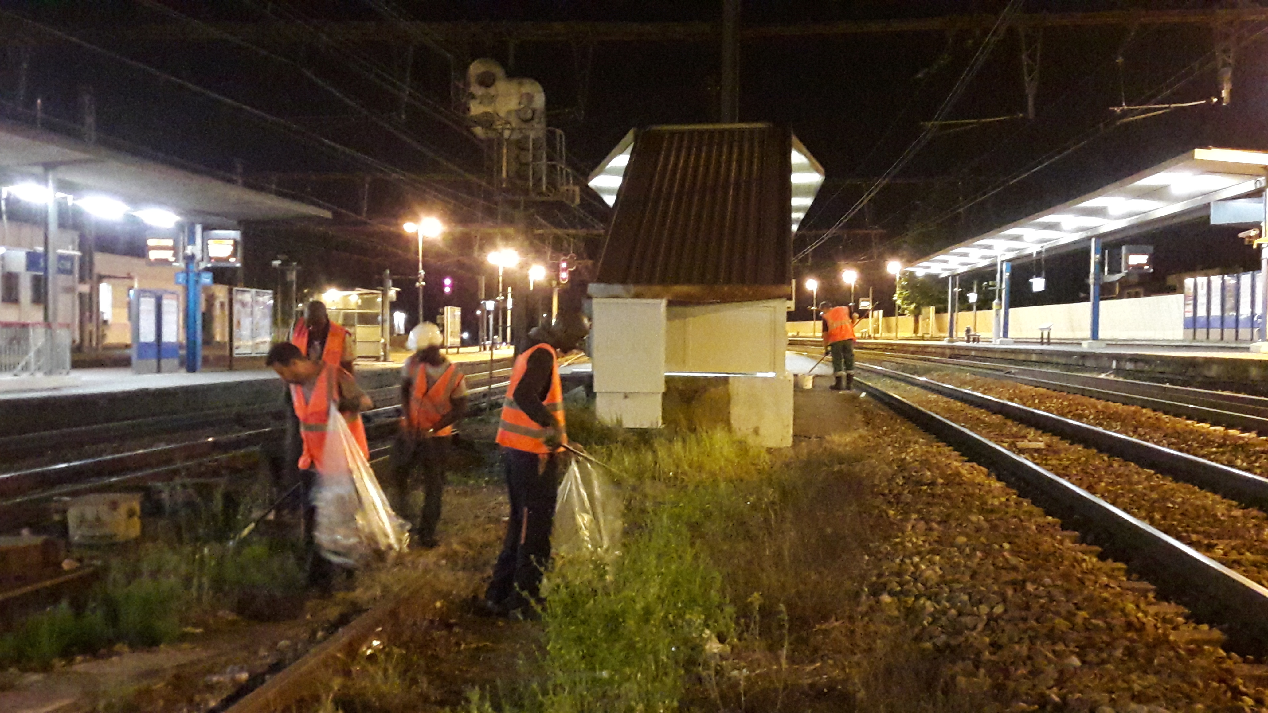 Toutes les voies de la gare ont été nettoyées puis désherbées: Ce désherbage des quais consiste à désherber les bordures de quais manuellement, nous n’utilisons plus de produits phytosanitaires.