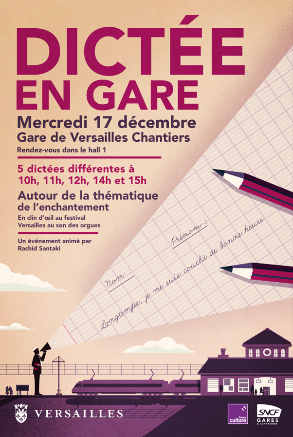 Le mercredi 17 décembre, la gare de Versailles-Chantiers se transforme en lieu de culture et de convivialité avec un événement inédit : cinq dictées publiques, ponctuées d’intermèdes théâtraux, pour tous les amateurs de mots et de belles lettres.