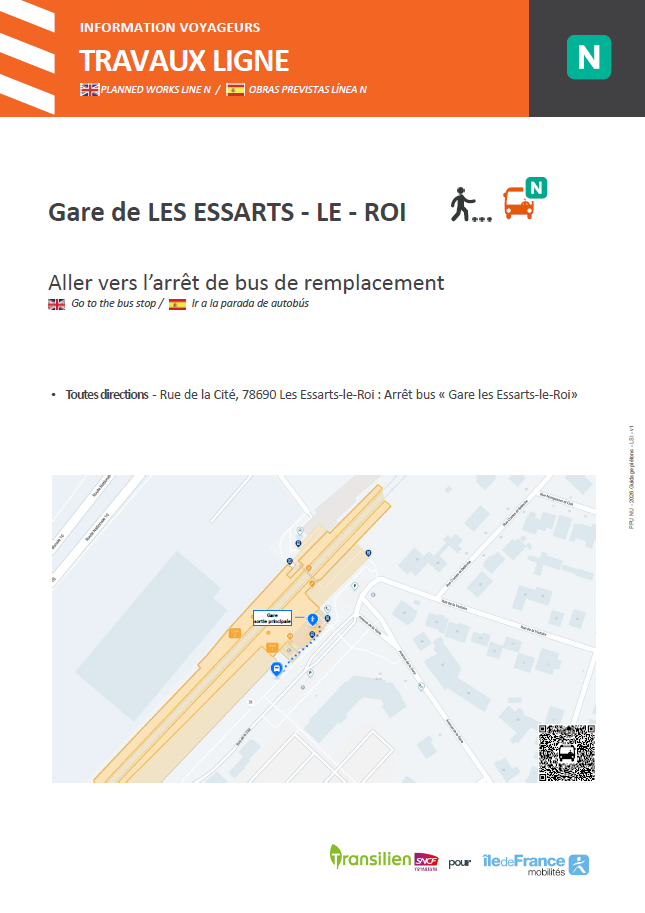 Les points d’arrêt sont indiqués sur l’application Île-de-France Mobilités, le site Transilien.com, l’application SNCF Connect ou votre appli de mobilité, sur les panneaux en gare et via une signalétique pour piéton qui indique le chemin à suivre. À Rambouillet, Saint-Quentin en Yvelines et La Verrière, nous avons placé des ballons lumineux pour vous aider à les localiser une fois la nuit tombée. En cas de doute, vous pouvez également demander à un agent sur place.