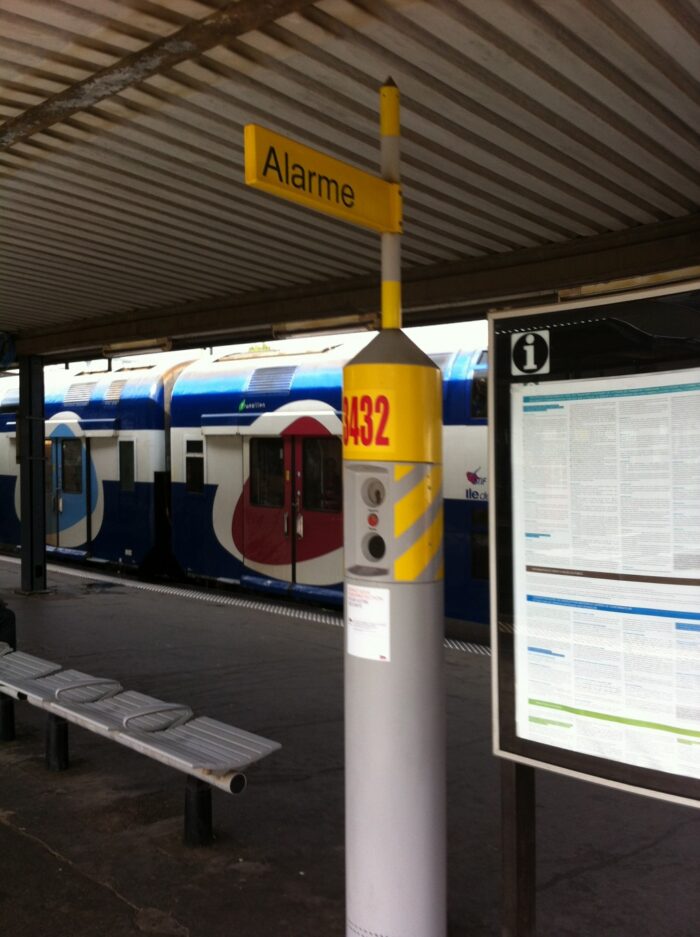 - Vous pouvez également utiliser une borne d’urgence présente sur les quais, qui permet de contacter un opérateur par interphone dans les mêmes conditions que le 3117.